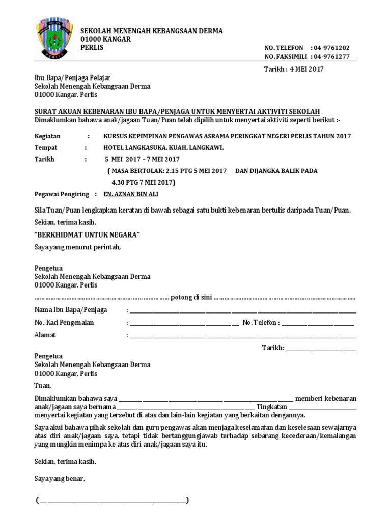 Surat rasmi kebenaran menggunakan dewan sekolah why so crazy. Related posts · contoh surat permohonan program untuk kpm · contoh surat jemputan ibu bapa ke program pemulihan sekolah · contoh surat jemputan perasmian program. Surat kebenaran rasmi ketua jabatan / contoh surat rasmi kebenaran ibu bapa membawa kenderaan. Ramai ibu bapa dan pelajar yang banyak membuat carian tentang contoh surat rasmi tidak hadir ke sekolah. Contoh surat kebenaran ibu bapa. Contoh format surat kebenaran ibu bapapenjaga.