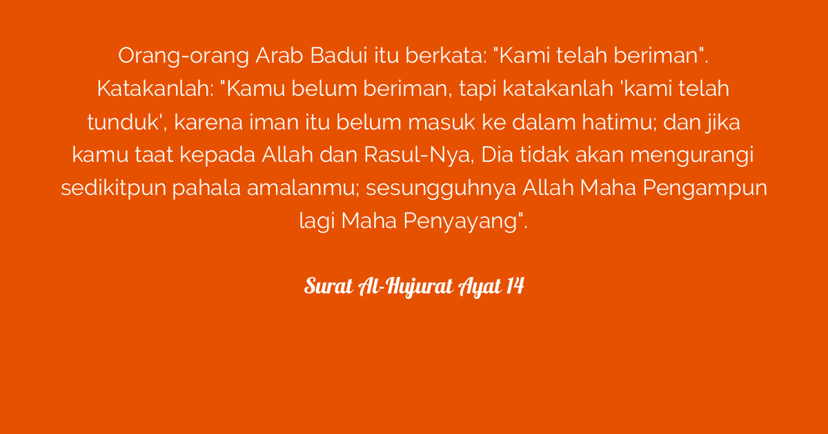 Muhammad sebagai pedoman hidup umat manusia. Katakanlah (kepada mereka), "kamu belum beriman, tetapi katakanlah 'kami telah tunduk (islam),' karena iman belum masuk ke dalam hatimu. 15) ibnu jarir mengatakan, allah swt. If they have surrendered (to islam), they are rightly guided.